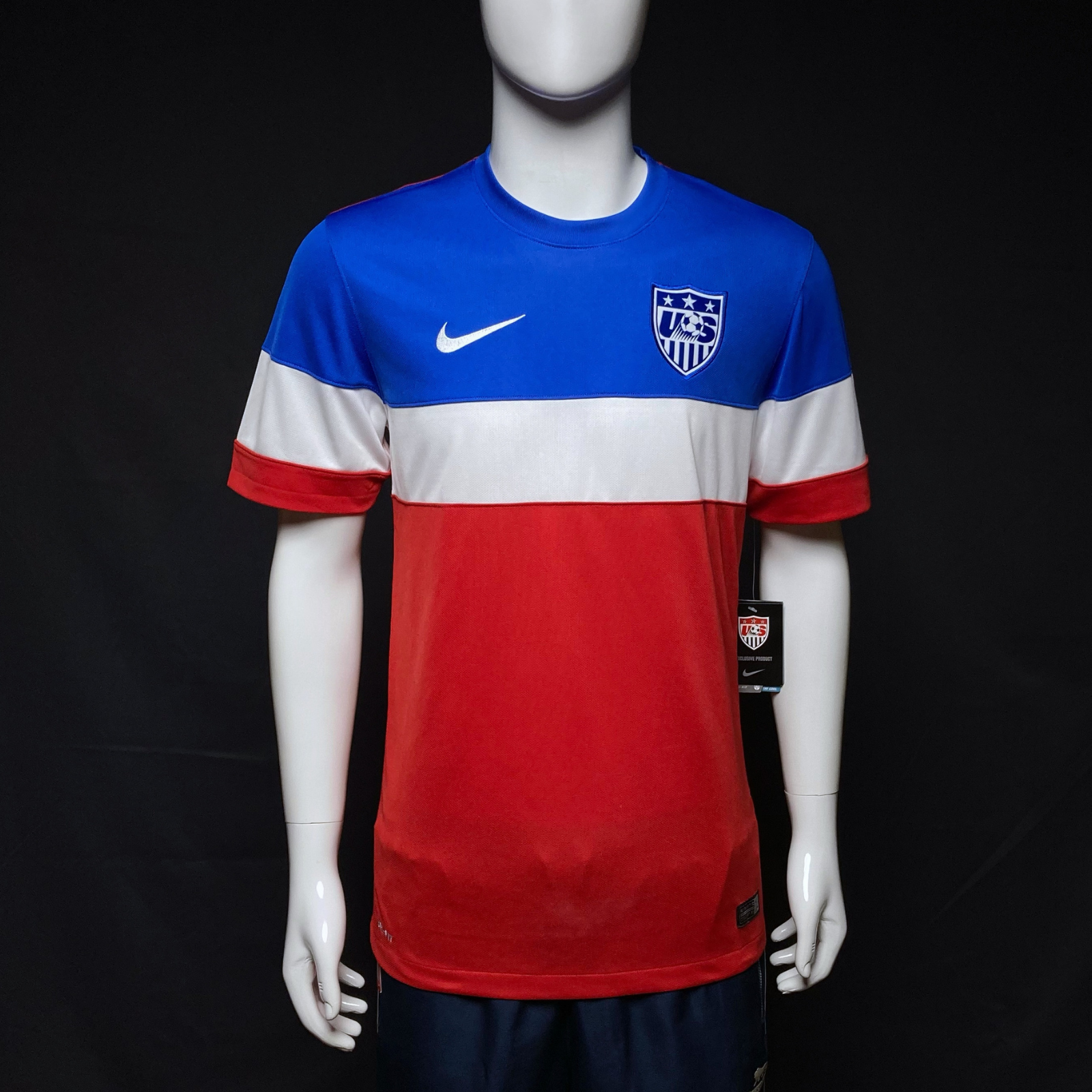 Check out the 2014 USA Away Nike 578026-657 – a striking red and white design with bold blue accents, symbolizing American soccer pride